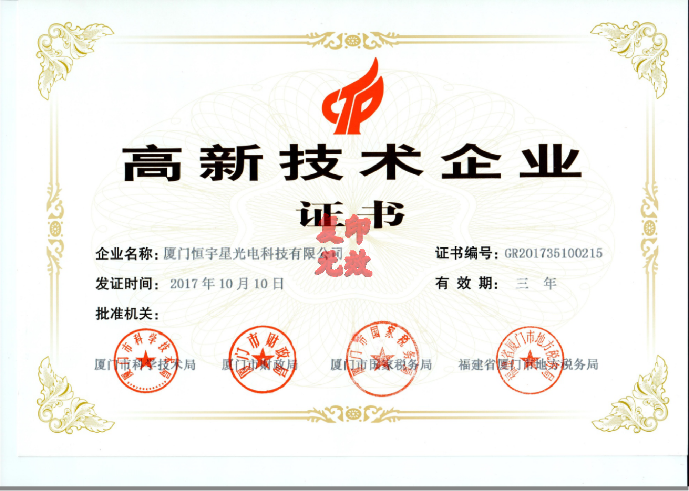 | 厦门恒宇星光电科技有限公司——致力于LED节能照明产品和太阳能设备的研发、设计、生产和销售以及智慧照明控制系统等相关软件的开发。 公司成立于2009年, 由一支从事光电行业和新能源应用行业多年的专业人员组建。成熟的技术力量、专注的产业精神、铸就专业的产品品质。 公司坚守“品质成就品牌、服务提升品牌”的科学理念;坚持“科技创新,稳健发展,以人为本” 的管理思想;遵循“诚信经营、用心服务”的原则;力求一流的产品质量、一流的商业信誉来塑造一流的企业形象。